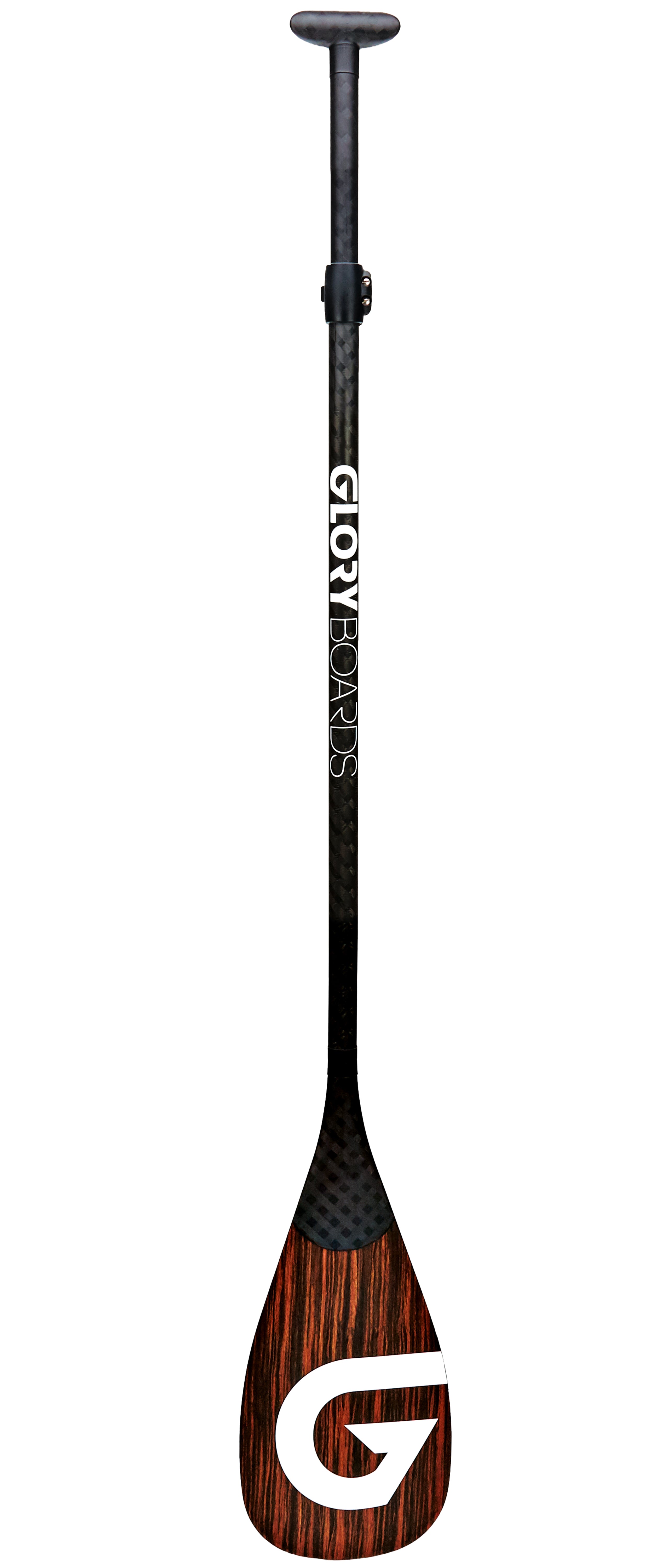 Dieses langlebige und individuelle Carbon SUP Paddel mit Makassar Furnier begleitet dich ein Leben lang! Die variable Länge von 180 bis 230 Zentimetern des 3-teiligen Dark Force SUP Paddels ist für weibliche und männliche Stand Up Paddler angenehm. Je nach Paddelart und Bedingungen wählst du die richtige Länge deines Carbon Paddels und justierst diese stufenlos. Bei all unseren Carbon Paddeln stimmt die Einstell-Achse immer zu 100%, da wir ein abgeflachtes Griffstück verwenden, welches in einer speziellen Klemme fixiert wird. Der ergonomische T-Griff der Glory Boards SUP Paddel liegt angenehm in der Hand.