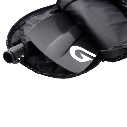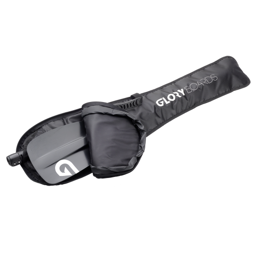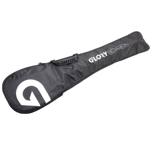 Carbon SUP Paddel sind anfälliger für Beschädigungen, deshalb sollten die Einzelteile des 3-teiligen Paddels beim Transport nicht aneinanderreiben. In der Glory Boards SUP Paddeltasche werden das Griffstück und das Mittelstück gemeinsam in die vorgesehene Halterung eingeschoben. Damit sich die Komponenten nicht berühren, wurde dazwischen eine Trennschicht eingearbeitet. Das Paddelblatt wird in die dafür vorgesehene Halterung eingeschoben. Ein stabiler, umlaufender Reißverschluss sorgt dafür, dass alle Paddelteile kompakt verstaut werden.