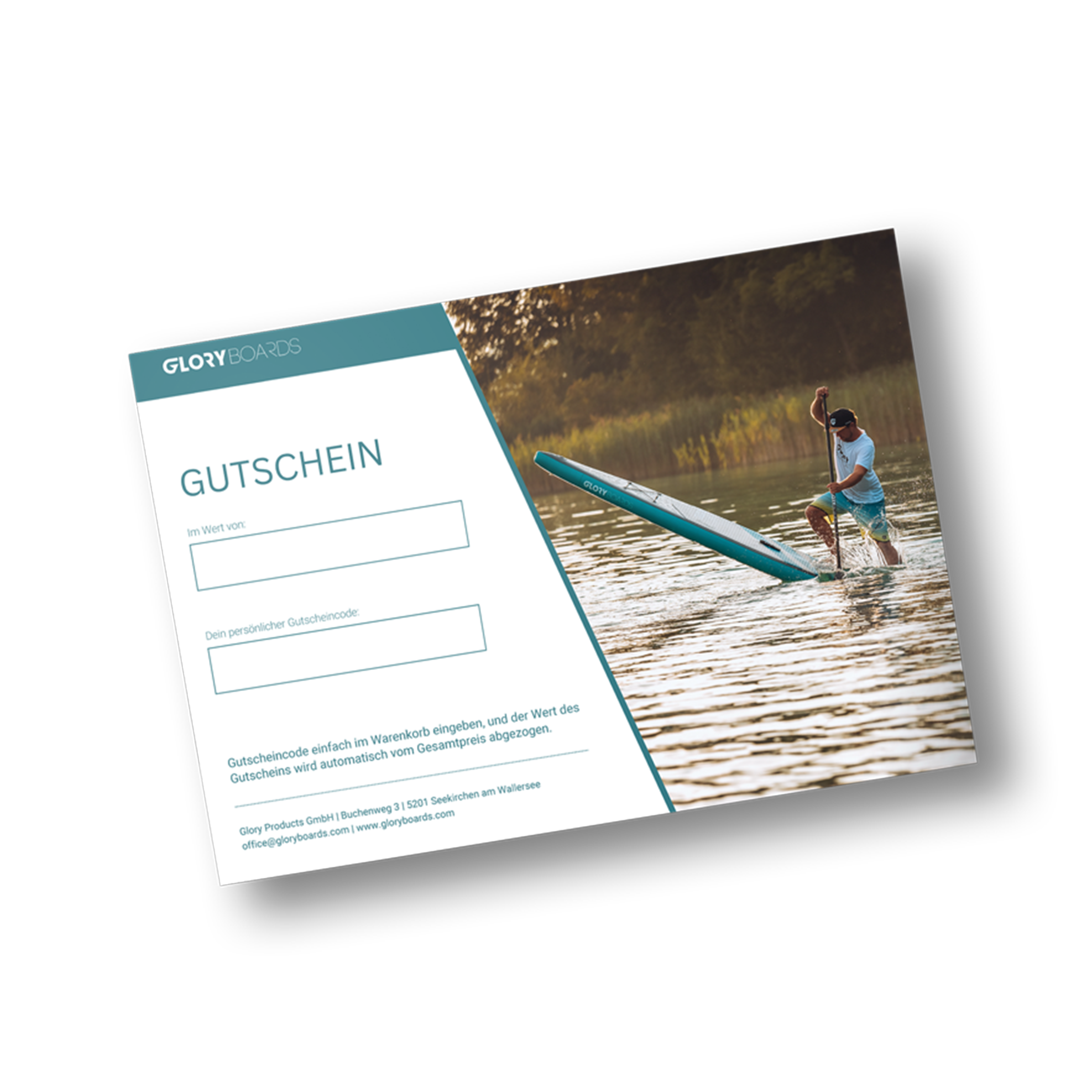 Schenke puren Wasserspaß: Mit dem GLORY BOARDS Wertgutschein liegst du immer richtig – egal ob für Einsteiger, Familien oder Tourenpaddler. Der Gutschein ist sofort als Print@home-Version verfügbar und damit das perfekte Last-Minute-Geschenk für jeden Anlass.